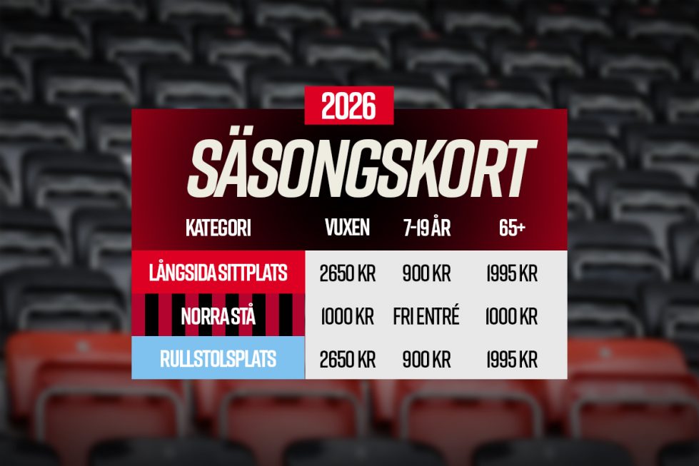 November månad har precis anlänt, men redan nu är förberedelserna i full gång inför nästa säsong i Superettan. På tisdag den 11 november klockan 12:00 släpps säsongskorten för 2026. All information om säsongskortet, priser och erbjudanden kan ni läsa om nedan.